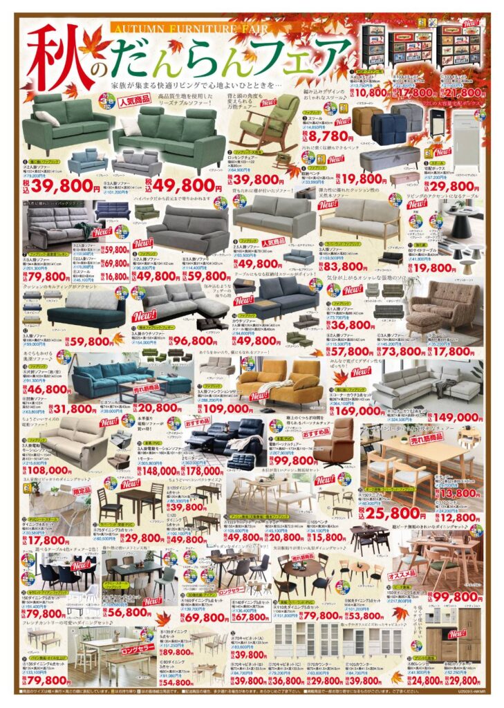 ソファーやベッド、オシャレなこたつなど、秋を心地良く過ごせるアイテムが満載。