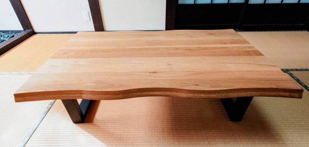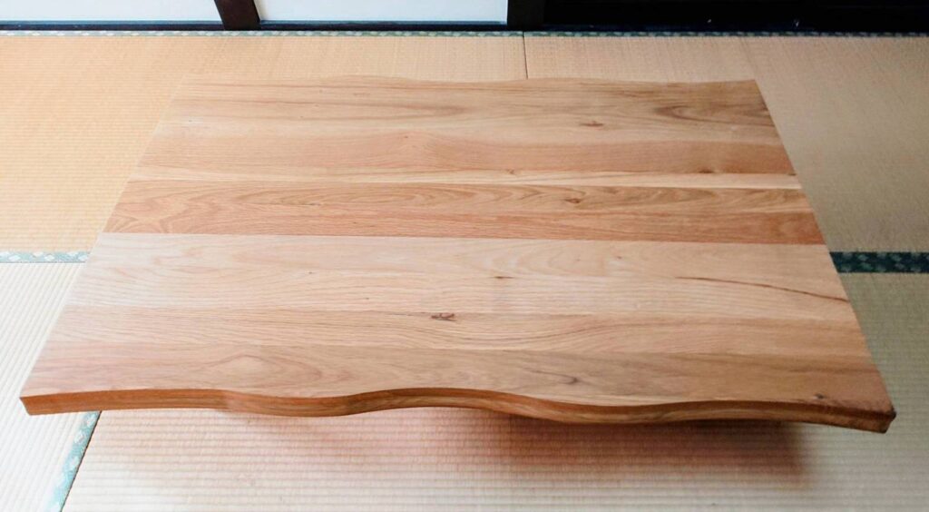 天然木ならではの美しい木目と波打ち加工が特徴的なテーブルを納品
