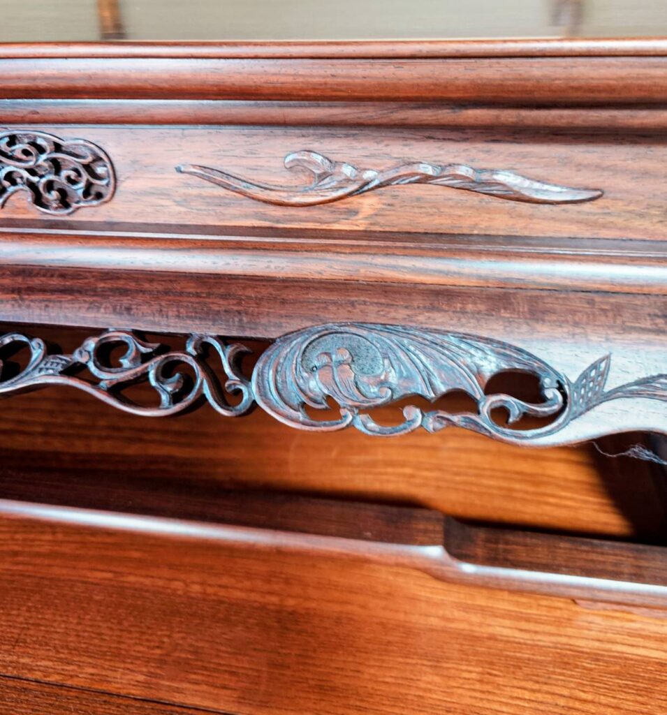こちらの花台は最高級の本紫檀を使い、天板は一枚板の貴重な品となります。