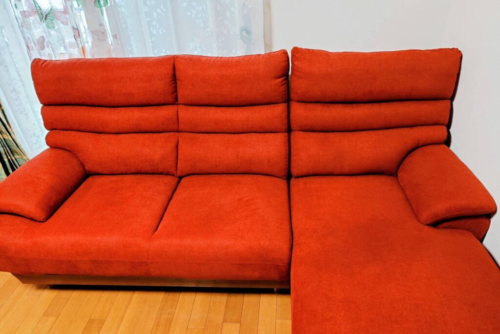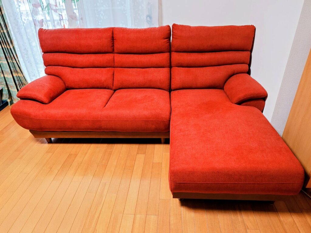 お部屋にアクセントをつける赤色のカウチソファを納品