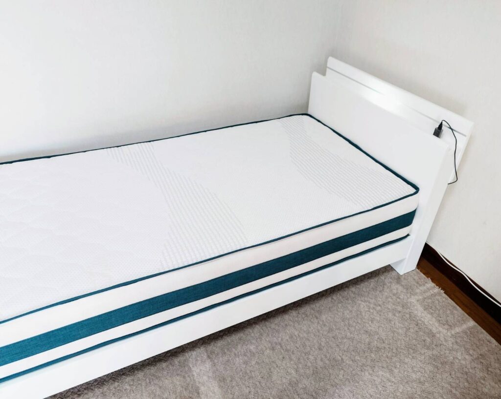マットは1本の鋼線を高密度に編み込んで作られた高密度連続スプリングなので、体を広い面で支え体圧を分散してくれます。抗菌防臭防ダニ加工のソフトな肌触りの日本製のマットを組み合わせることで、より快適な眠りへつながります。