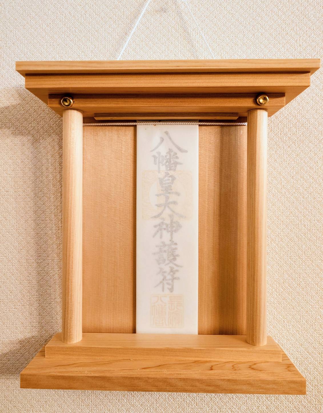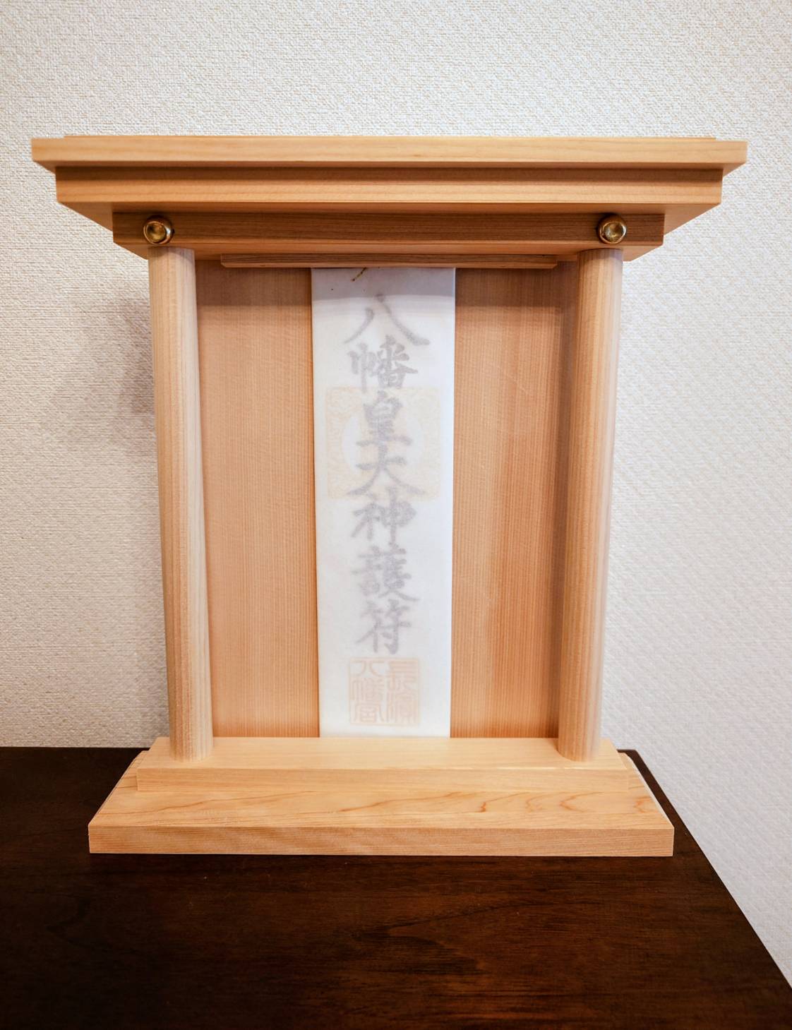 現代の住宅環境に合わせたスリムでモダンな桧の御札立てです。