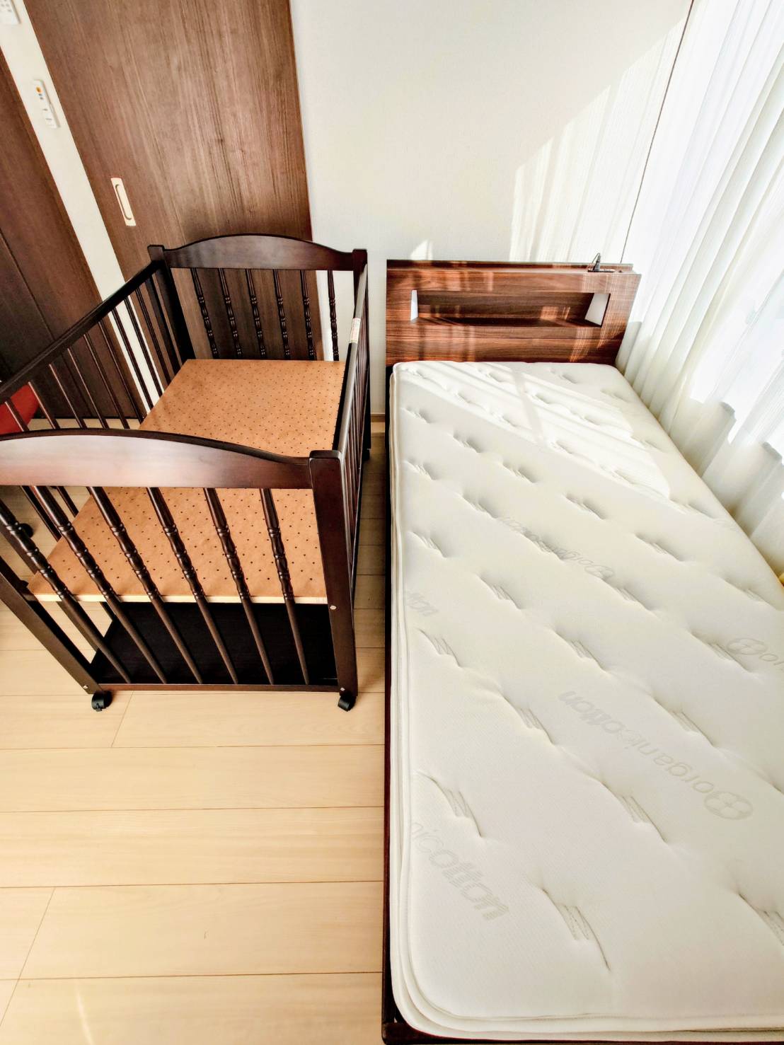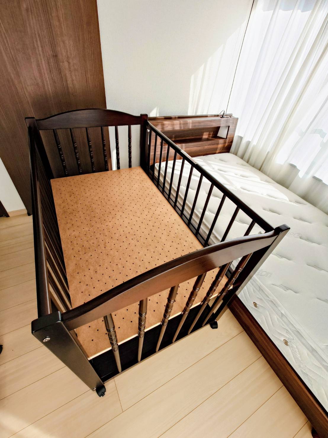 収納棚板付きの国産ベビーベッドとシングルベッドを納品