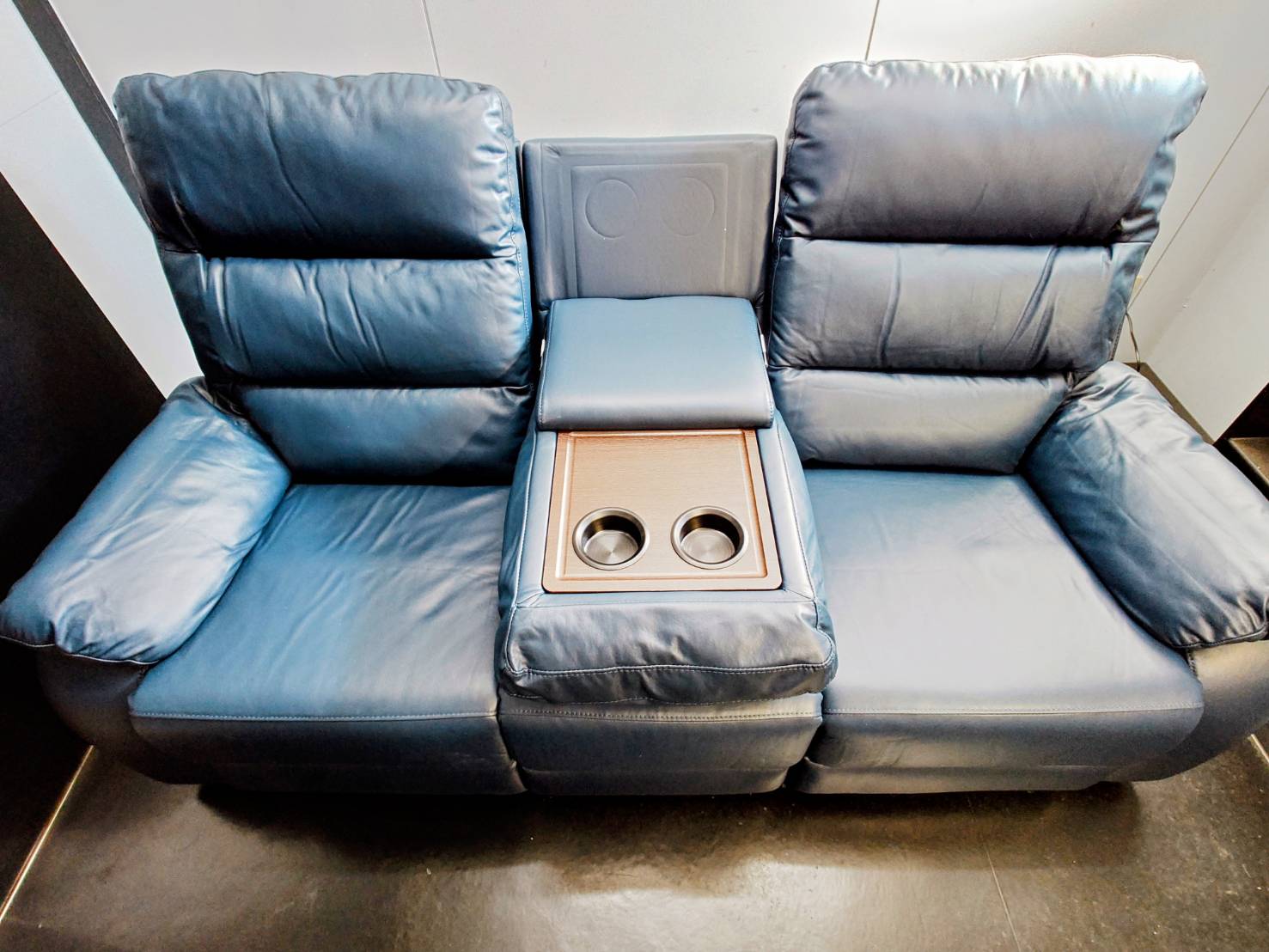 座面にはポケットコイルを使用し、中央の背を倒すと飲み物等が置けるカップホルダーとなります。両サイドのボタン操作で簡単にお好みの角度に調整でき、ヘッドレストも調整できるので、ゆったりと寛ぎの空間を実現できます。
