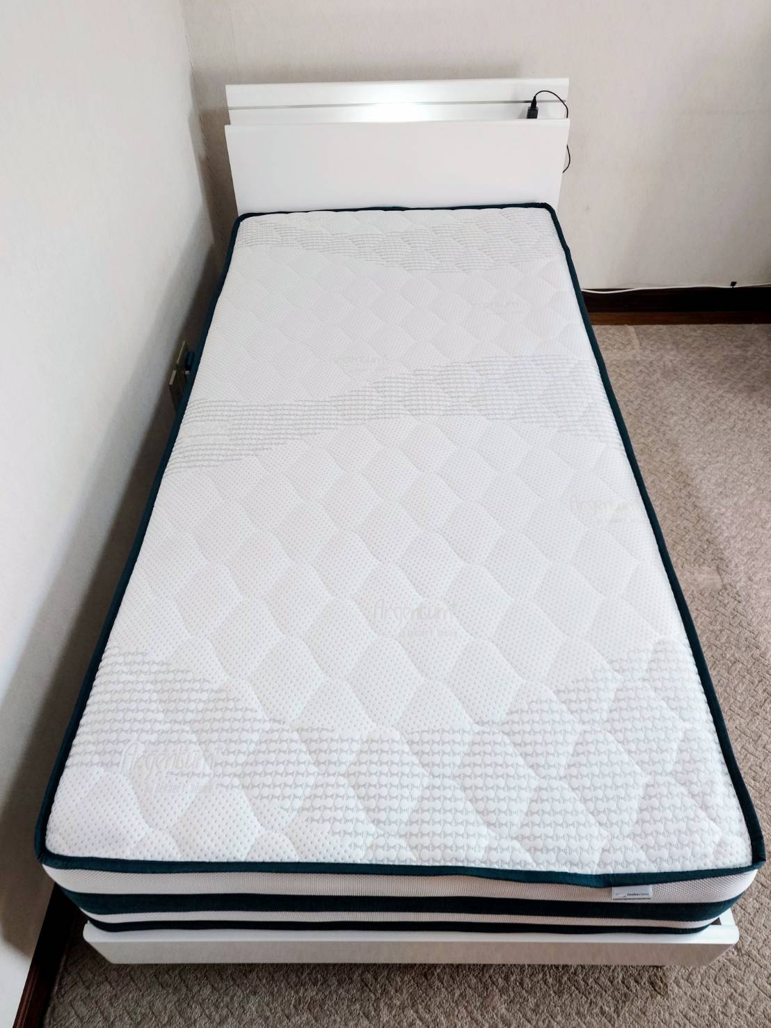 マットは1本の鋼線を高密度に編み込んで作られた高密度連続スプリングなので、体を広い面で支え体圧を分散してくれます。抗菌防臭防ダニ加工のソフトな肌触りの日本製のマットを組み合わせることで、より快適な眠りへつながります。