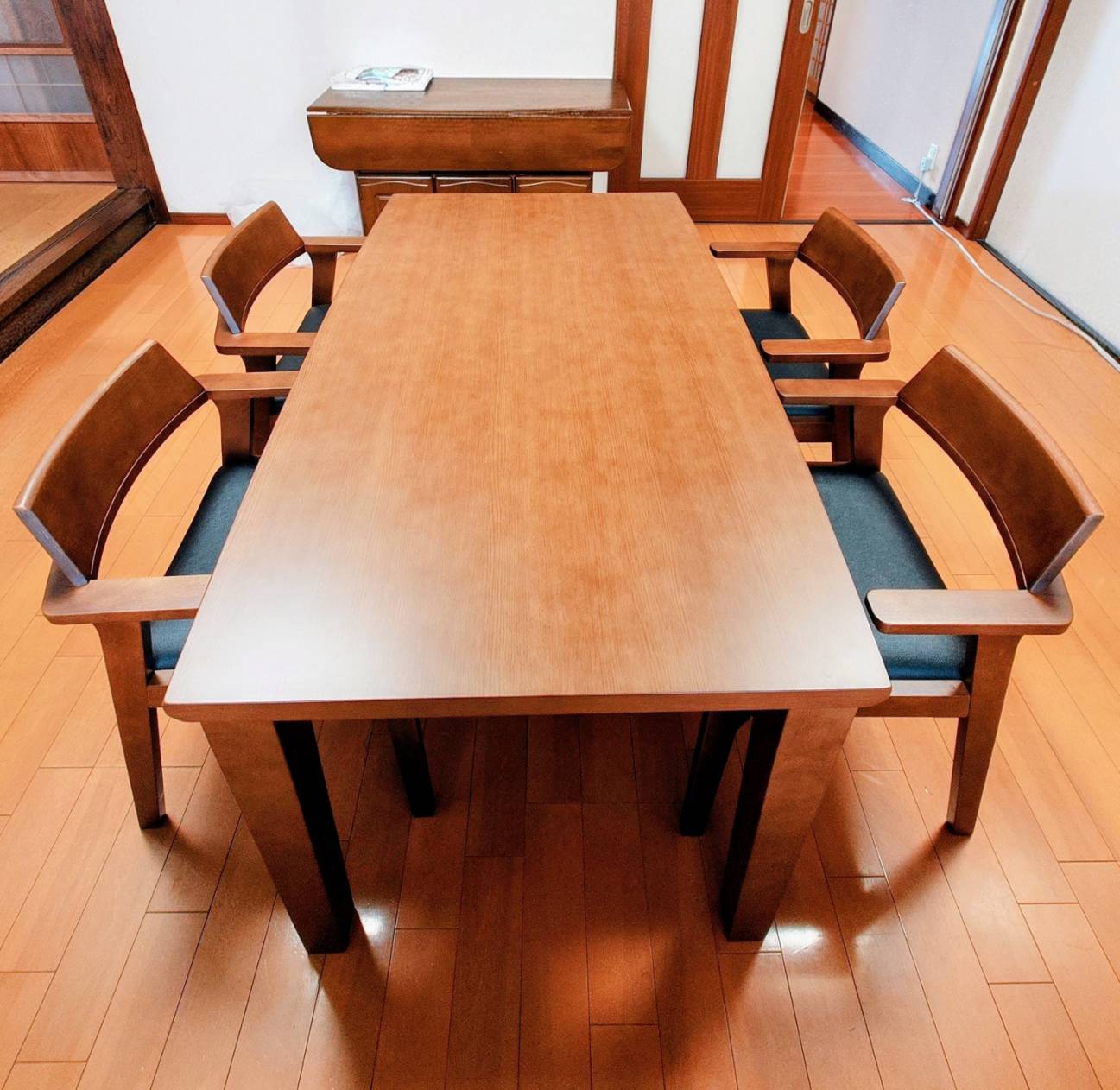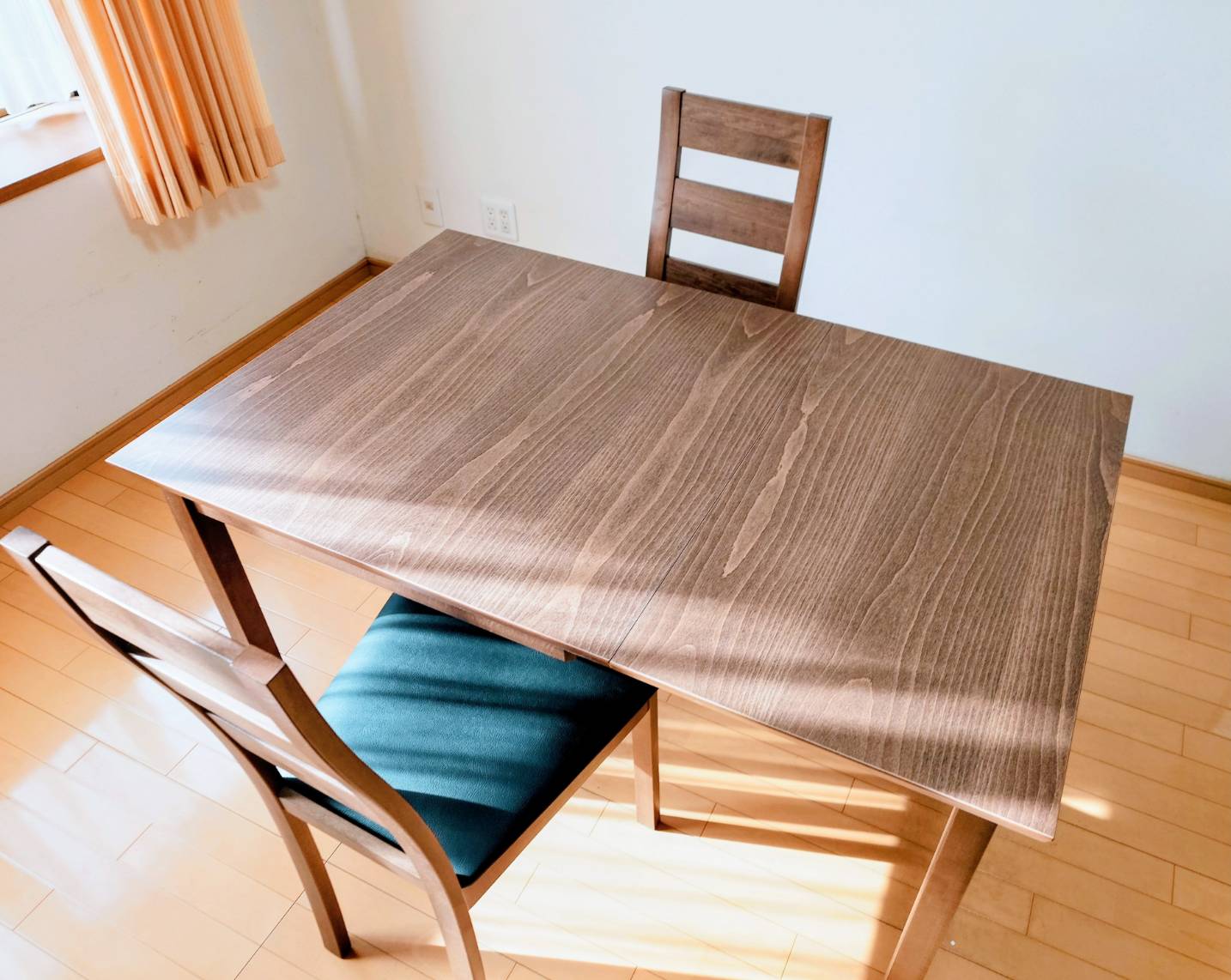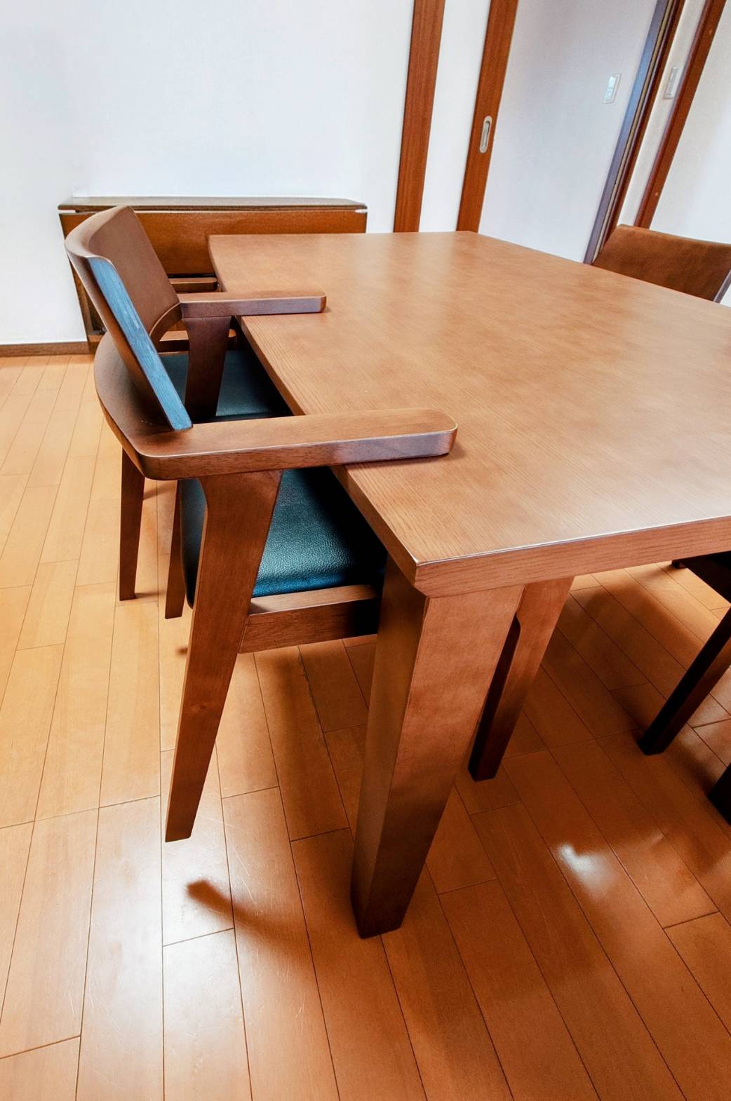 チェアが天板にかけられる天然木ダイニングセットを納品