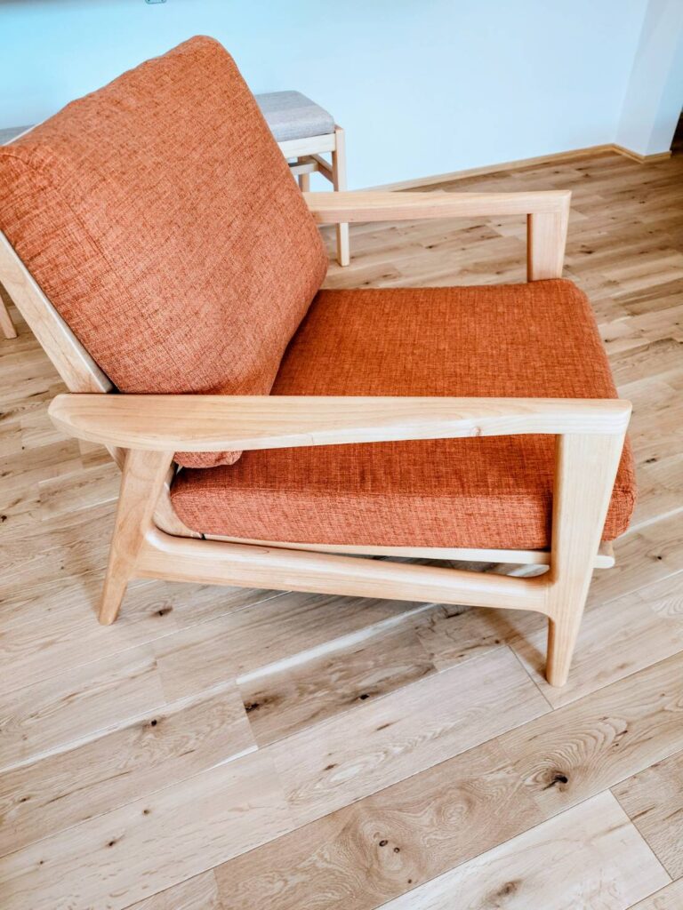 天然木のナチュラルな風合いが部屋に馴染む1Pソファーを納品